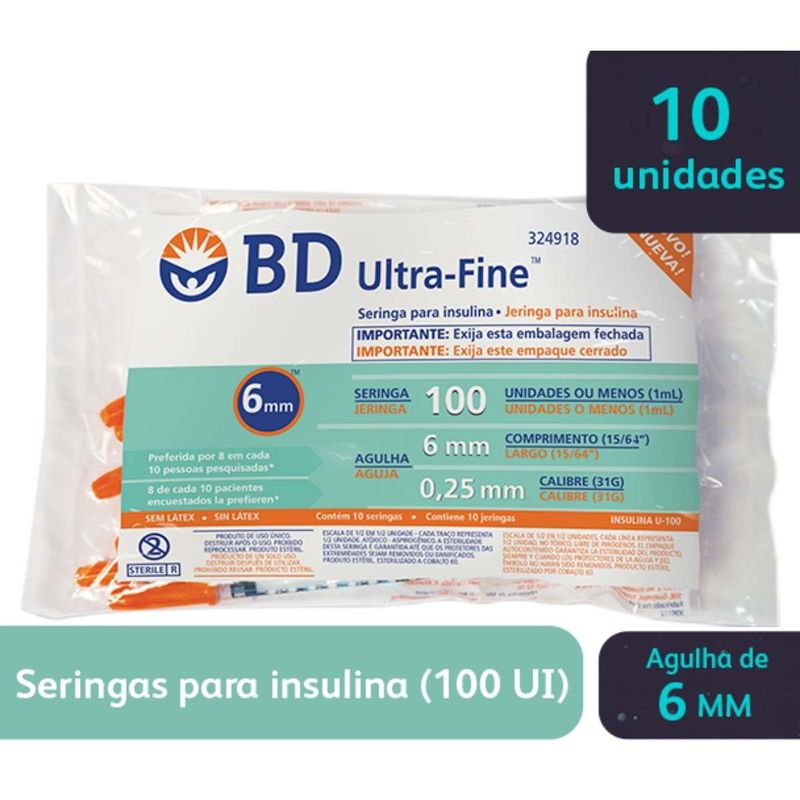 SERINGA UF 100X1 INSULINA 1ML 6X0,25* C/10