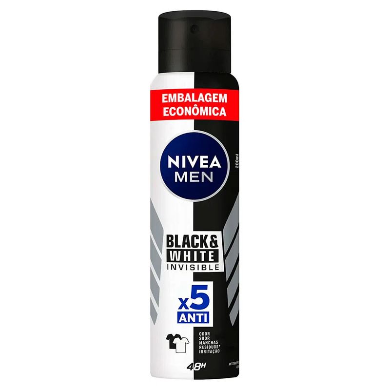 | Descrição | Nivea Men Black&White é um desodorante em aerossol que, além de oferecer proteção antitranspirante por até 48 horas, possui uma fórmula poderosa antibacteriana - eliminando 99,99% das bactérias causadoras do mau odor - e uma tecnologia inovadora que protege as fibras dos tecidos. Ele evita manchas brancas nas roupas e o surgimento de manchas amarelas. Além disso, possui uma fórmula equilibrada livre de álcool etílico, corantes ou conservantes. |