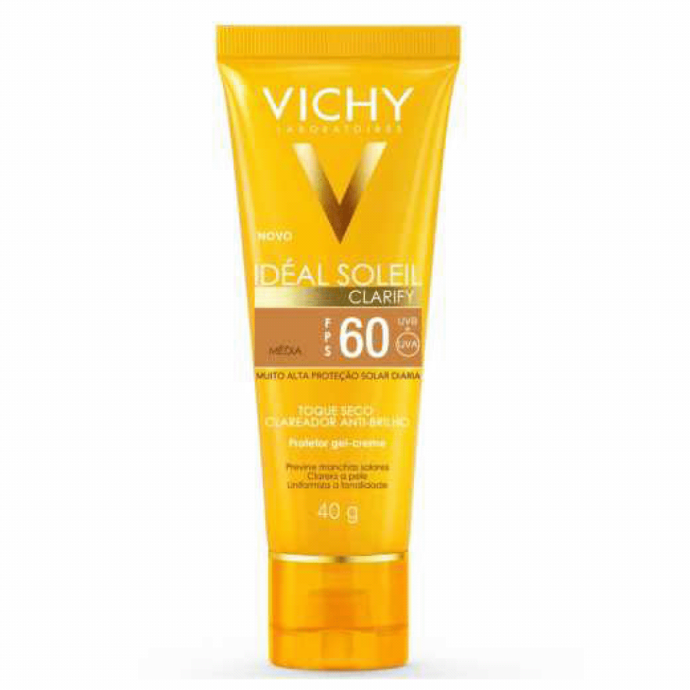 | Descrição | Idéal Soleil Clarify é um protetor solar facial com cor, desenvolvido para se adaptar às cores de pele com tom médio, cobrindo manchas e imperfeições. Oferece alta proteção contra os raios UVA, UVB e luz visível - FPS 60 -, tem textura gel creme com toque seco e altíssima absorção de oleosidade. Ideal para peles mistas e oleosas.