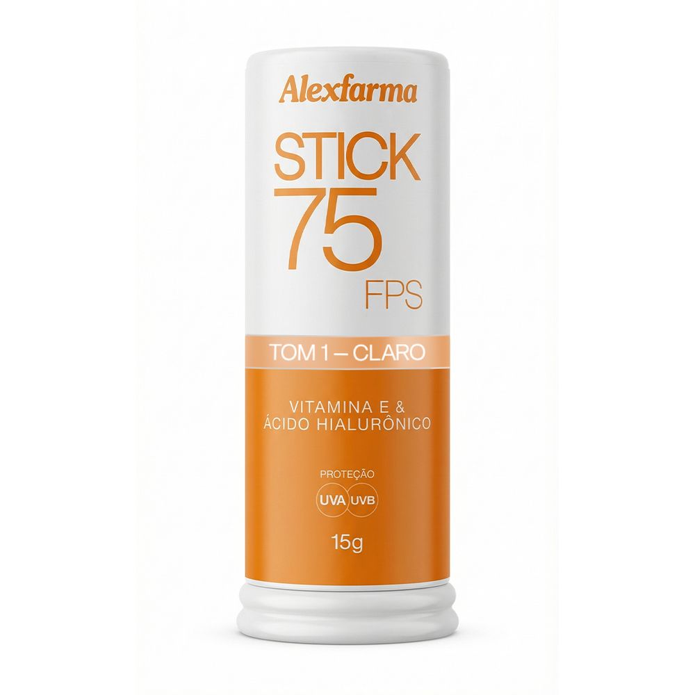 O Protetor Solar em Stick FPS 75 da Alexfarma possui ação hidratante e nutritiva proporcionando um toque seco e sedoso, disponível nos tons: Peach, Bege e Bronze.